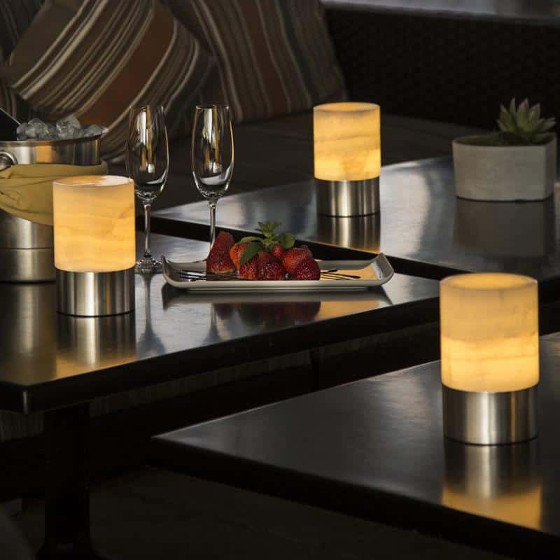 Especialmente creada para restaurantes, hoteles, bares, casinos, discotecas, bodas, recepción, eventos, pub, cóctel, cruceros, servicio de catering, spa, hammam, buffet, sala de concierto, etc. nuestras pequeñas lámparas de mesa inalámbricas recargables le permitirán atraer a más clientes y diferenciarse de sus competidores de día y noche. De hecho, la luz y el ambiente luminoso de sus salas son factores decisivos que harán que las personas entran en su establecimiento para sentirse bien y consumir sus productos. Muy fácil de usar por el personal o camareros, meseros, gerente, … Esas lámparas decorativas inalámbricas para los profesionales son ideales para decorar e iluminar sus mesas y barras, mesa de café, en interiores, en terraza o en espacios húmedos y ventosos.